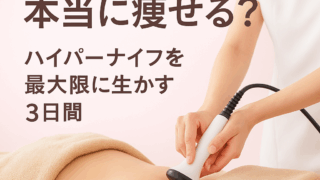 エステって本当に痩せる?50代主婦の私がハイパーナイフを体験し、効果を最大限に生かす“施術後3日間の食事法”と注意点をまとめました。むくみ改善・巡りUP・見た目の変化などリアルな感想を紹介します。