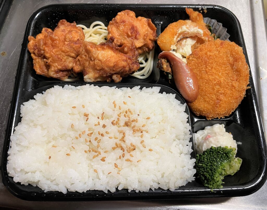 | 昼食(12時) | キャベツサラダ・唐揚げスペシャル弁当(ほっかほっか亭)半分・大阪王将の羽根付き餃子6個 | 約750kcal |